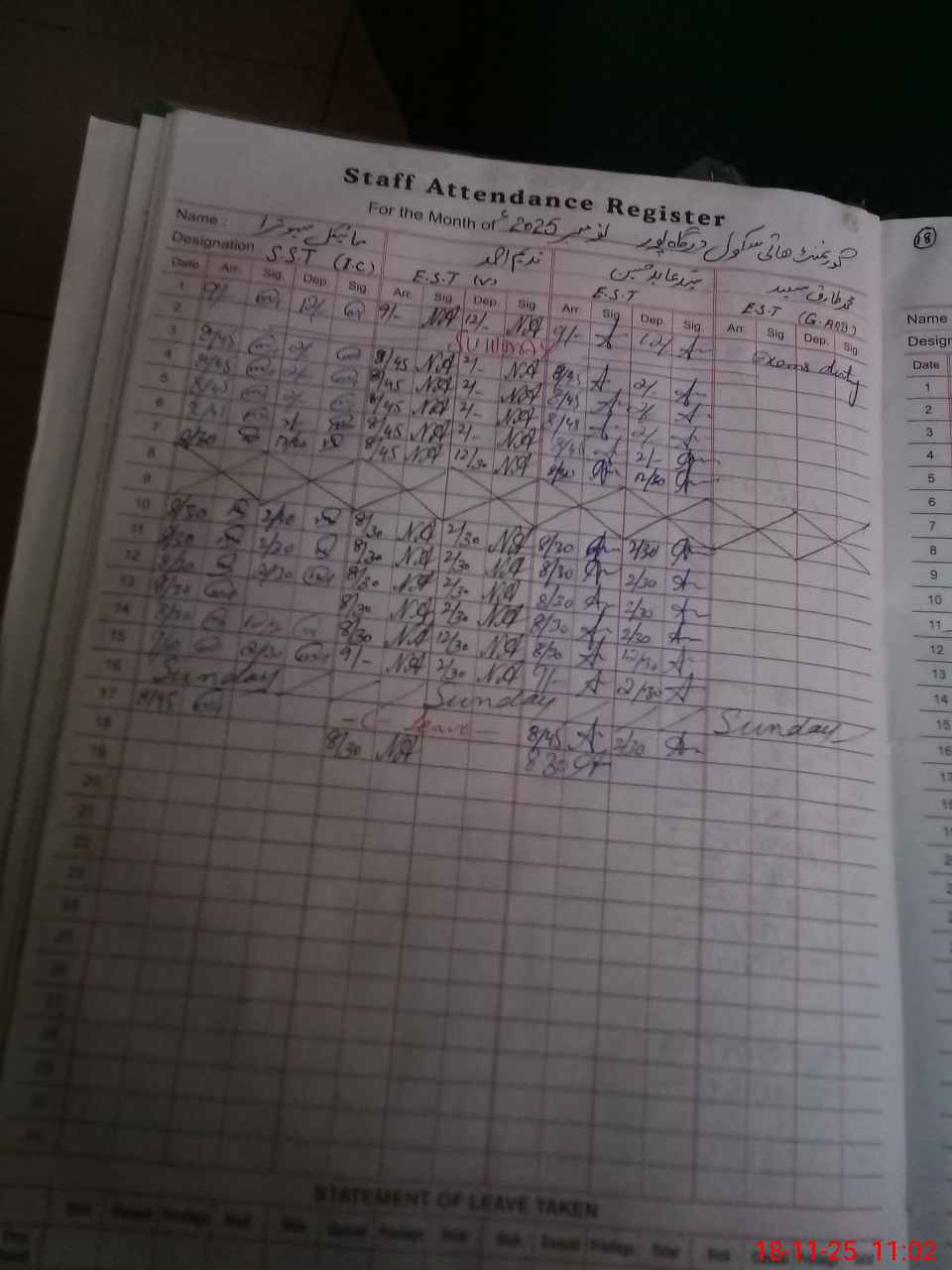 | Remarks (Use Separate Page if Required): ALI AMMAR ESE ABSENT FROM 13 JANUARY 2025 MUSHTAQ MASIH ESE ABSENT FROM 19 AUGUST 2023 NSB AND FTF RECORD NOT AVAILABLE | |||||