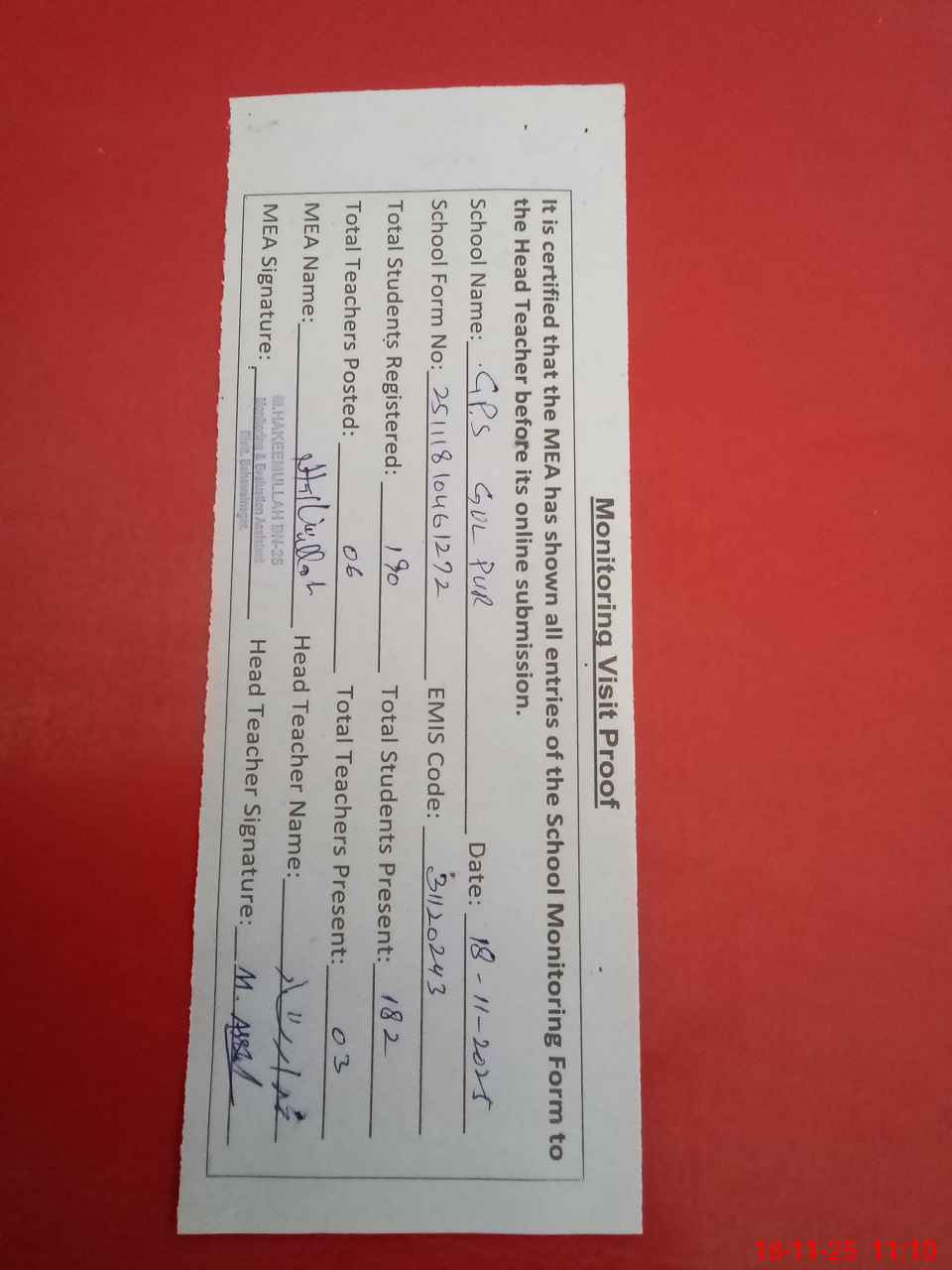 | EMIS Code: 31120243 | Name of School: GPS GUL PUR | |||