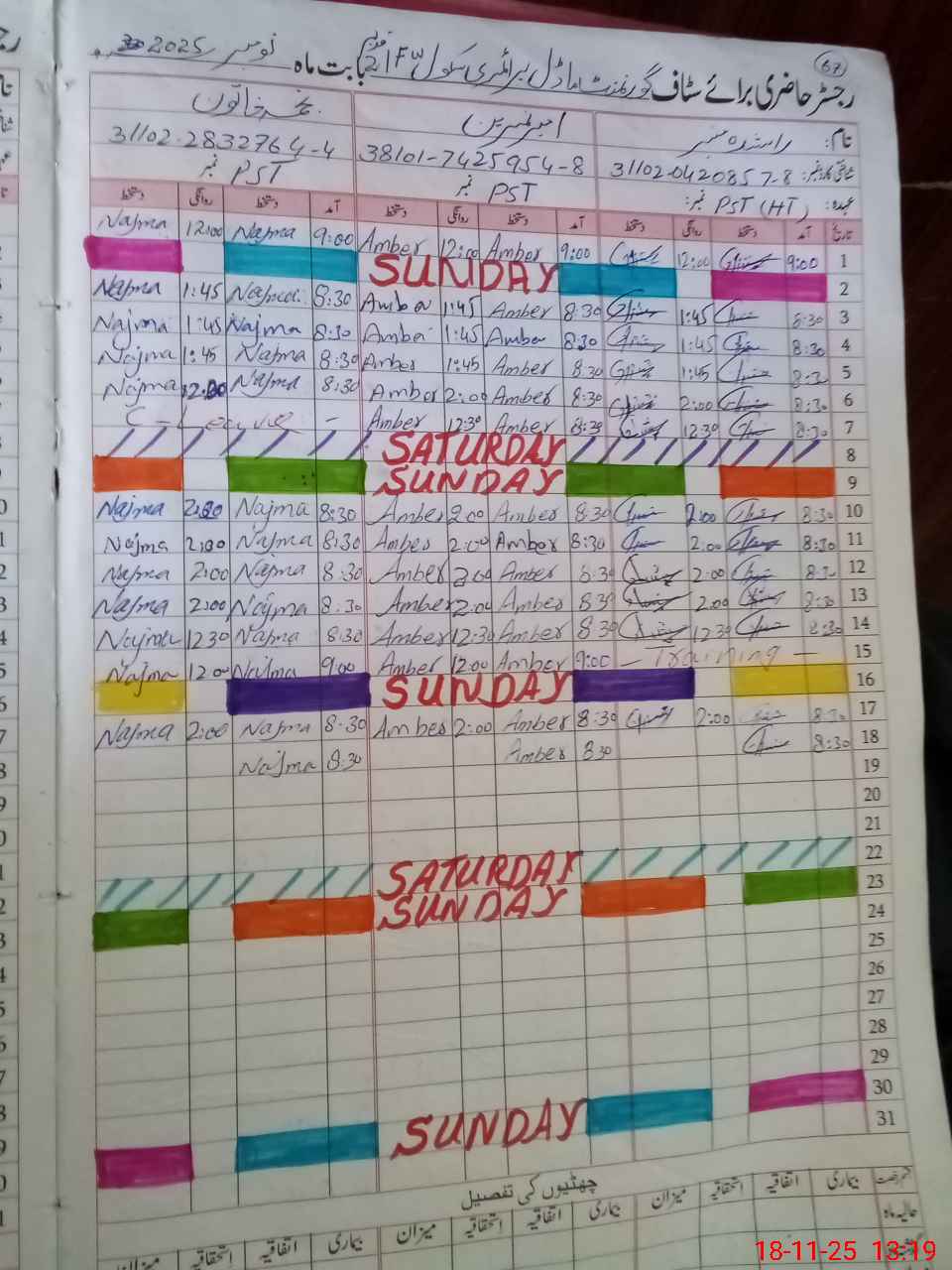| CNIC | Full Name | Designation | R/C | Absence During Last Calender Month |