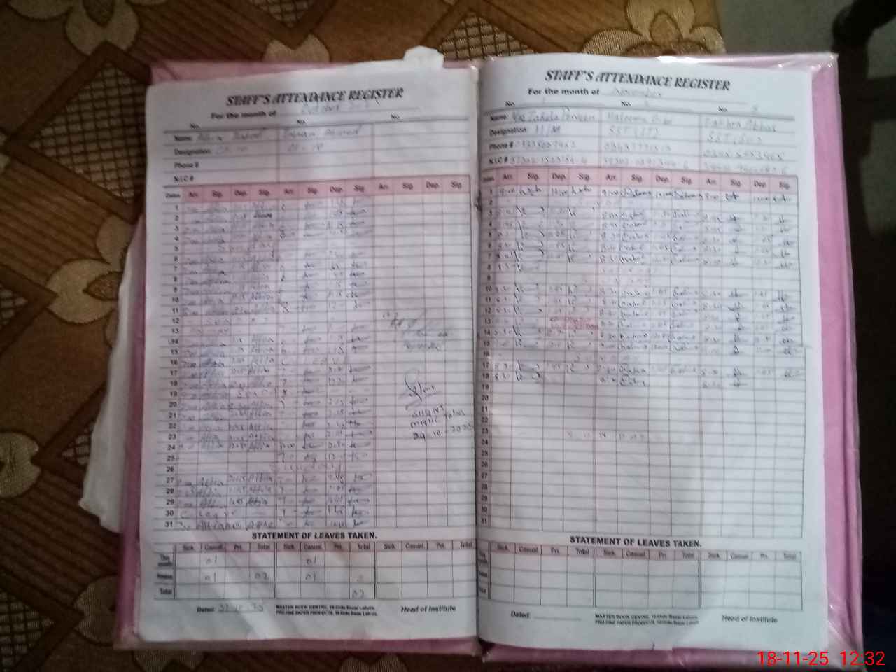 | CNIC | Full Name | Designation | R/C | Absence During Last Calender Month |