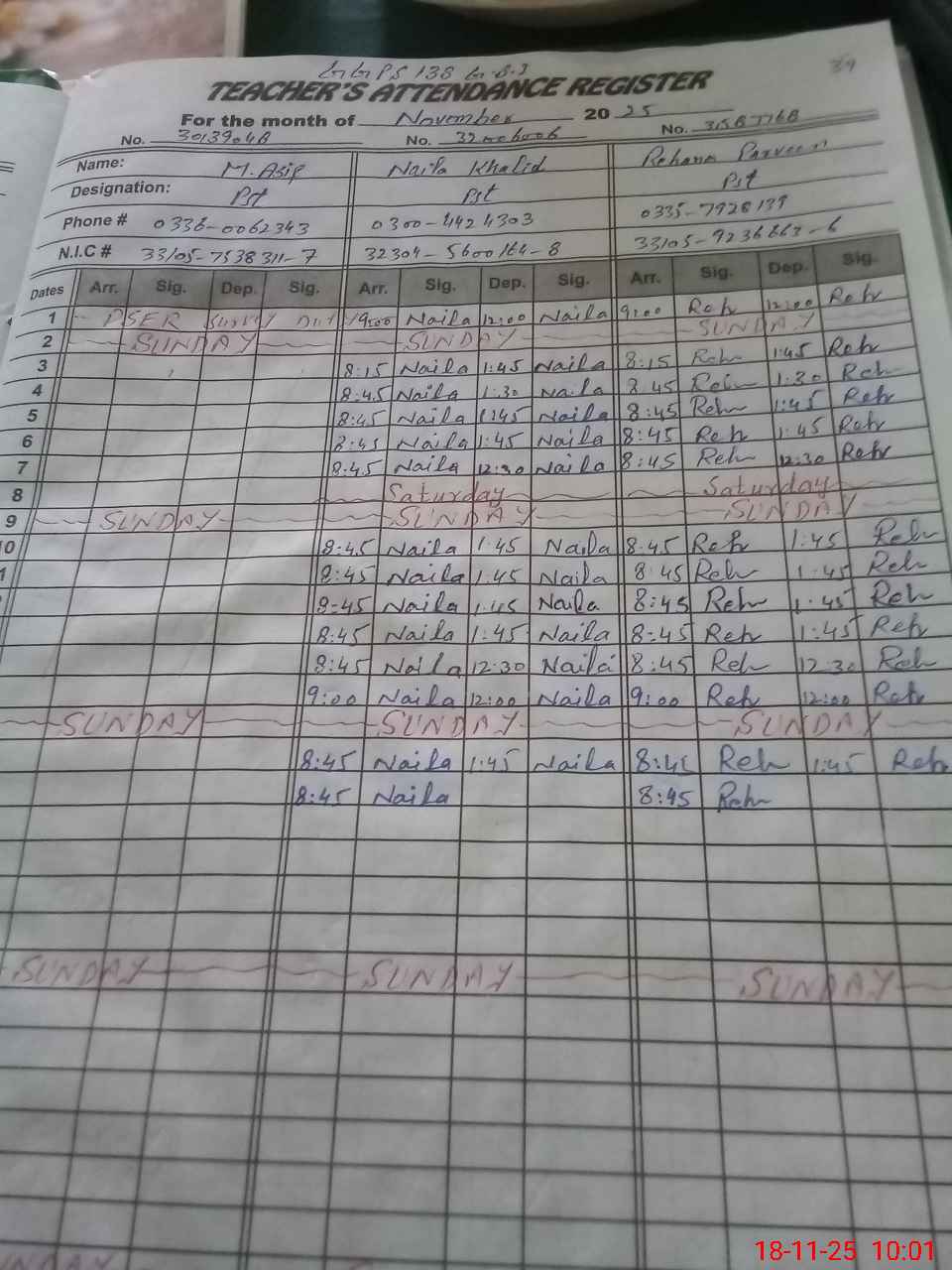 | Name: MU**** AS**** Designation: (School Headmaster's/Headmistress's) PST Phone/Cell Number: 03**** |
