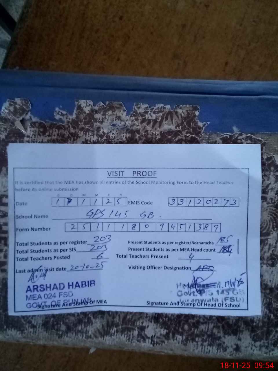 | EMIS Code: 33120273 | Name of School: GPS 145 GB | |||