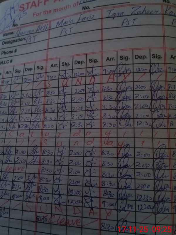 | CNIC | Full Name | Designation | R/C | Absence During Last Calender Month |