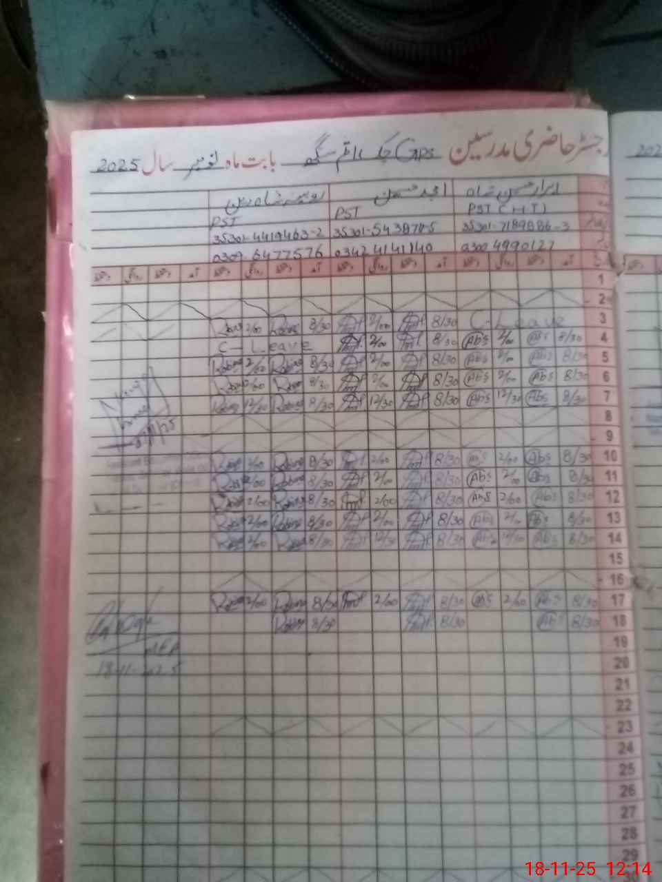 | Name: AB**** HU**** SH**** Designation: (School Headmaster's/Headmistress's) PST Phone/Cell Number: 03**** |