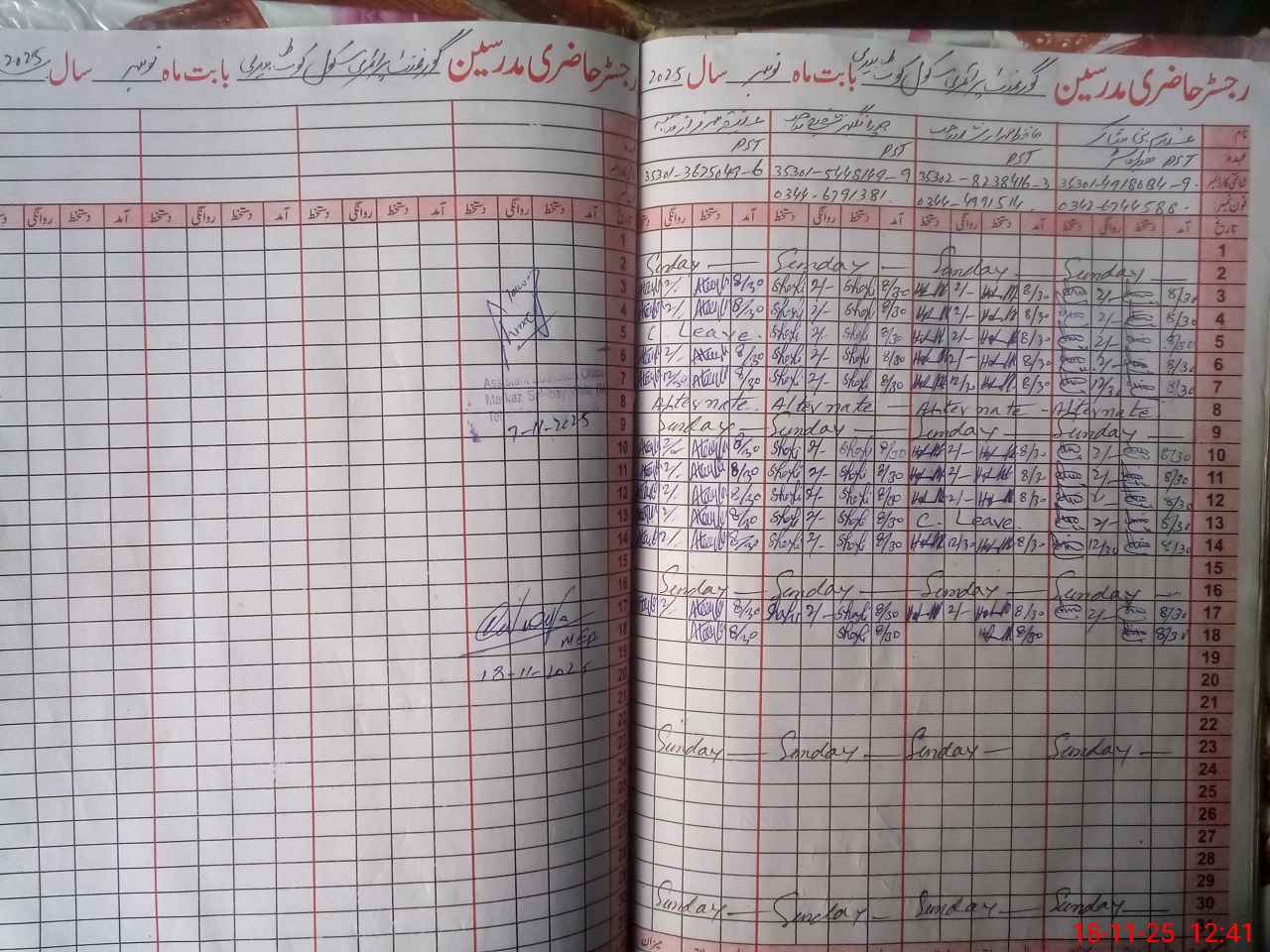 | CNIC | Full Name | Designation | R/C | Absence During Last Calender Month |