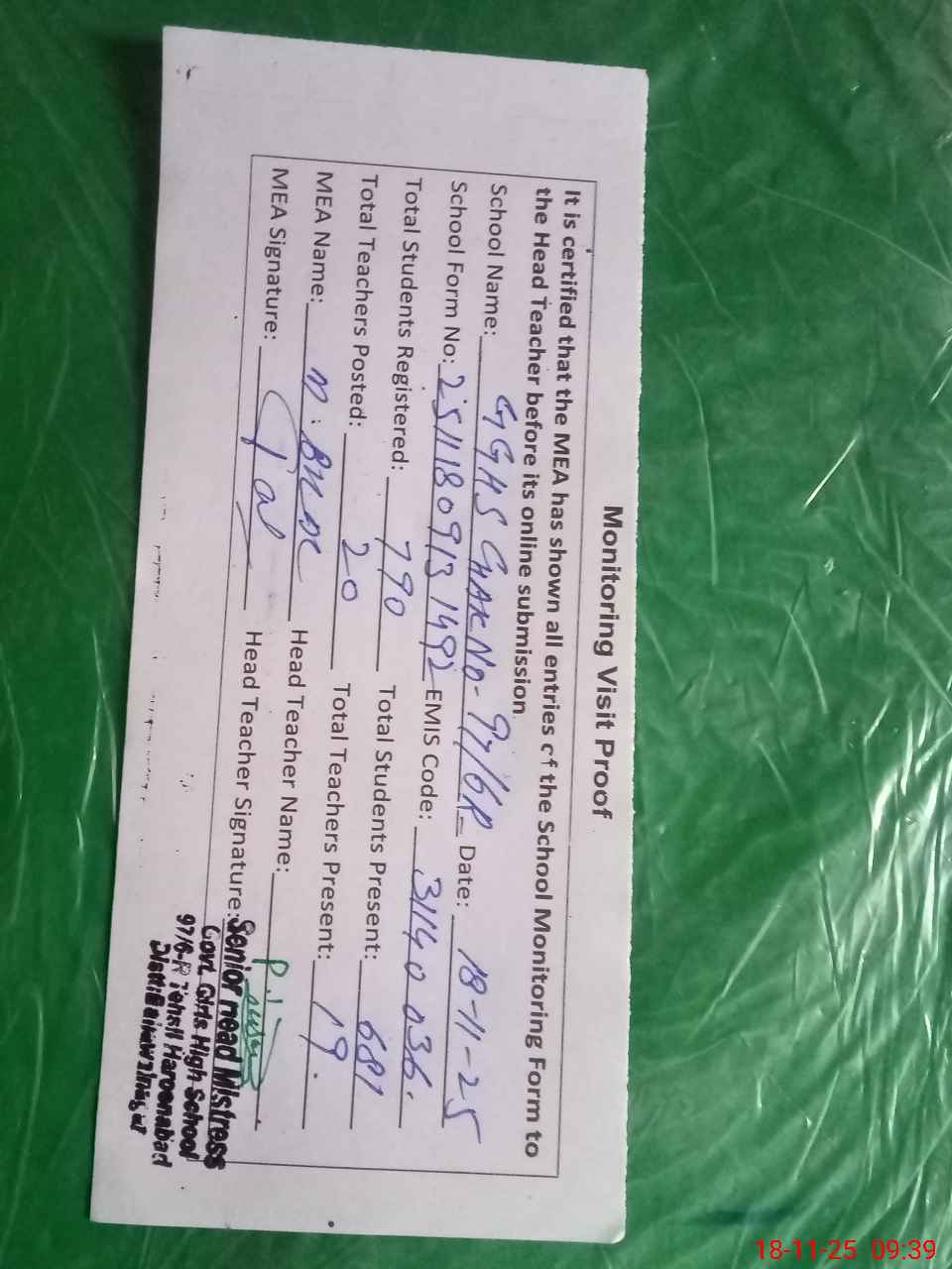 | Certified that this School was Inspected by the Undersigned MEA/DMO Today and the Information Stated Above is as Per Record. | |||||