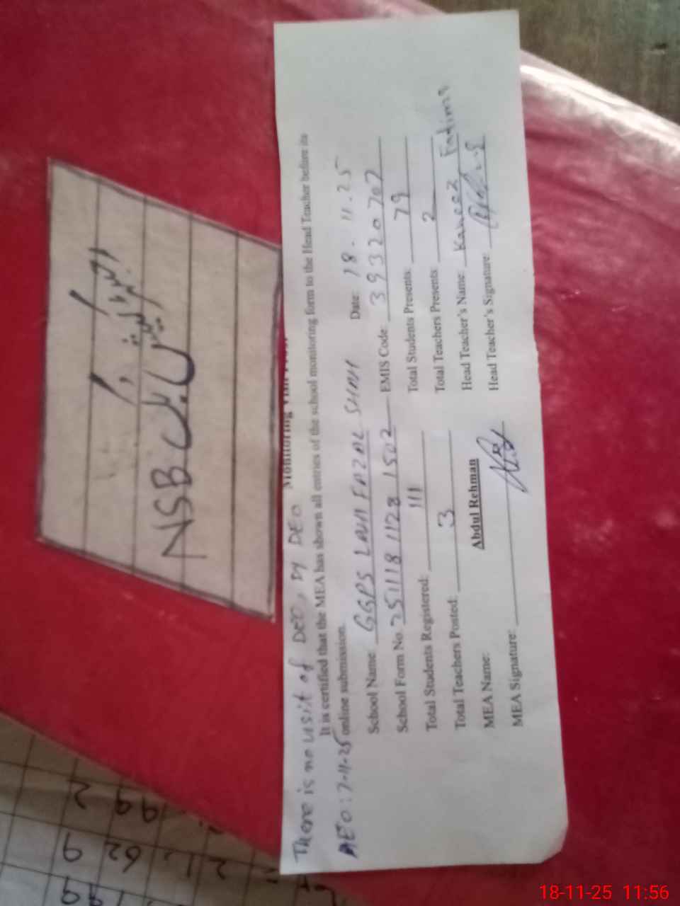 | EMIS Code: 39320707 | Name of School: GGPS LAHI FAZAL SHAH | |||