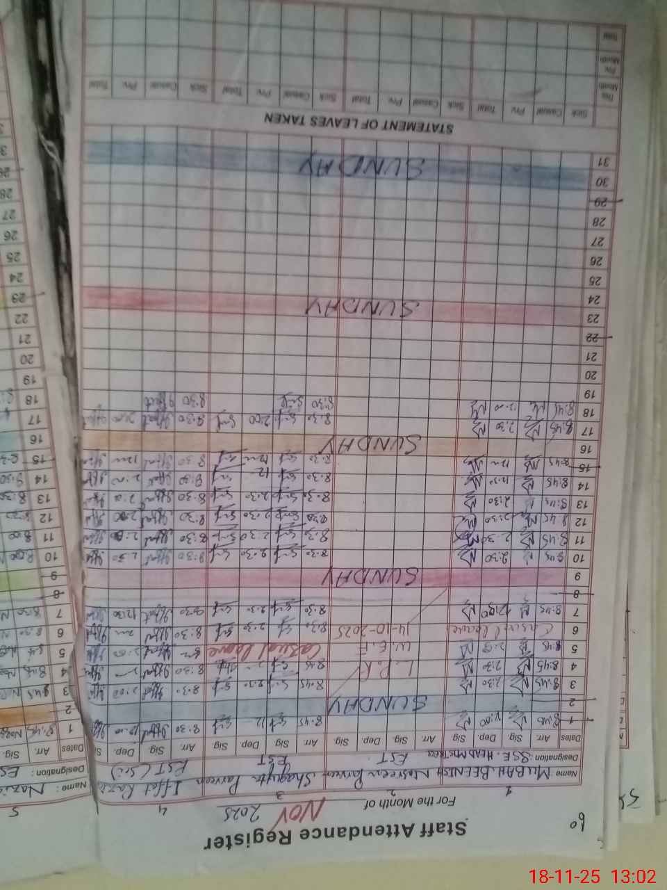 | CNIC | Full Name | Designation | R/C | Absence During Last Calender Month |