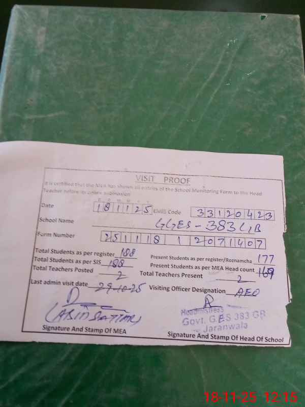 | EMIS Code: 33120423 | Name of School: GGES CHAK 383 GB LUNDIANWALA | |||