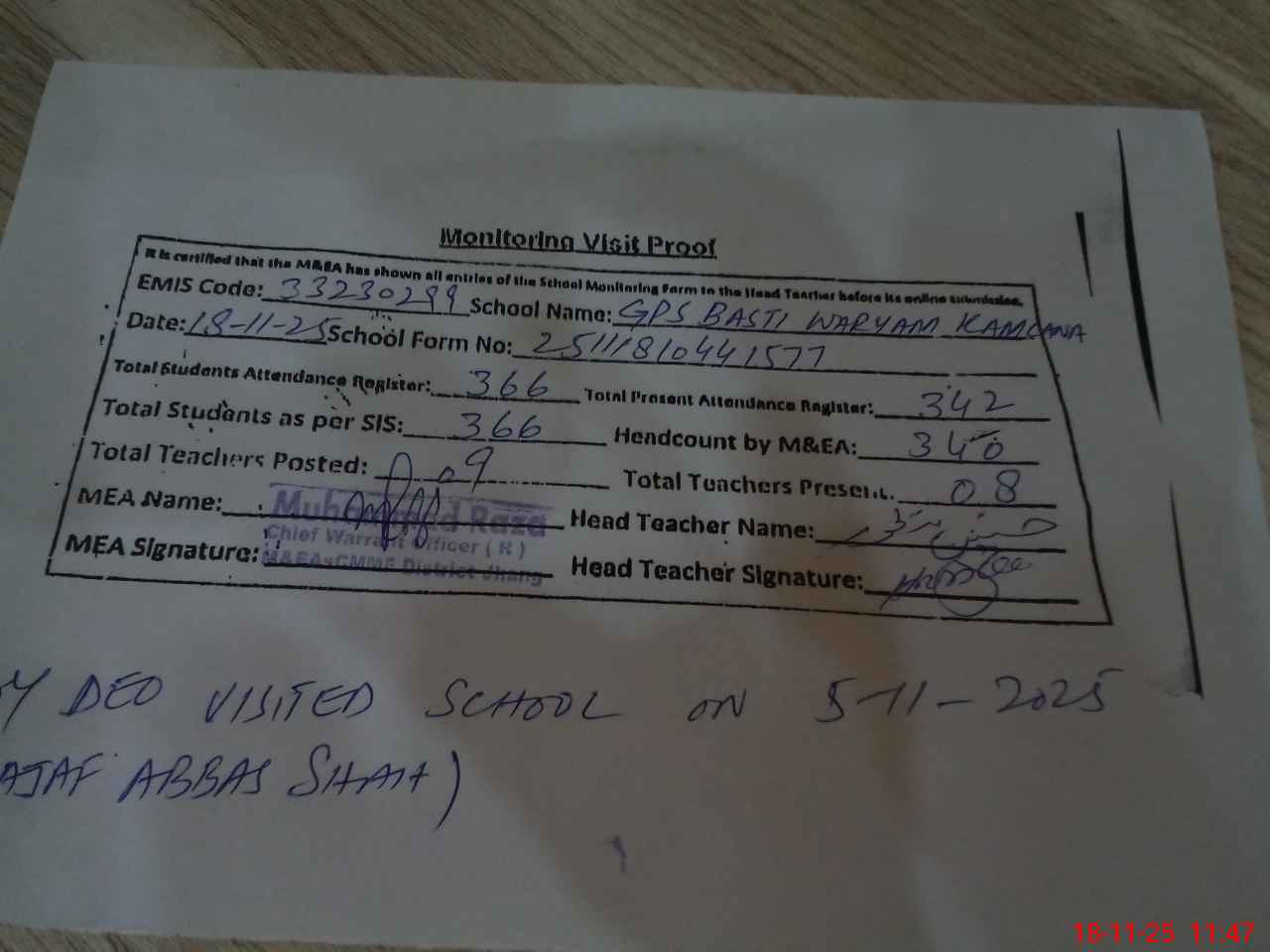 | EMIS Code: 33230299 | Name of School: GPS BASTI WARYAM KAMLANA | |||