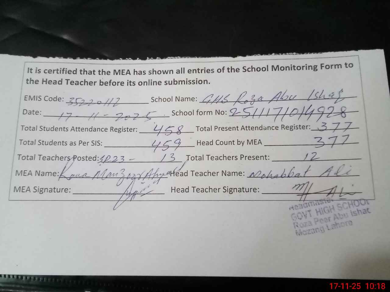 | EMIS Code: 35220112 | Name of School: GHS ROZA ABU ISHAQ MOZANG (Newly Upgraded) | |||