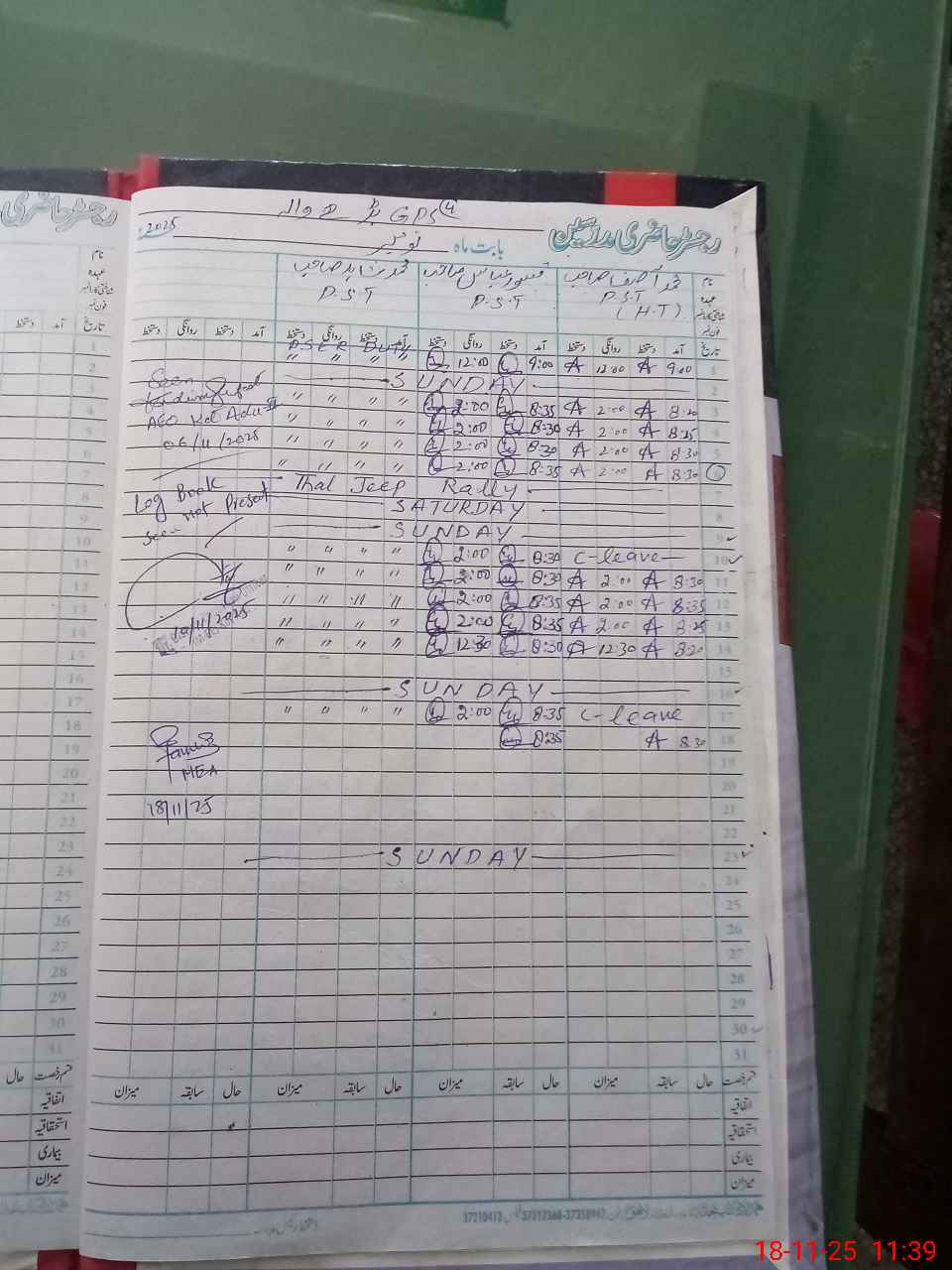 | CNIC | Full Name | Designation | R/C | Absence during last cal. month |