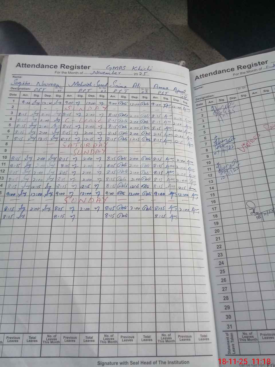 | Monitoring Date: 18-11-2025 | Start Time: 18-11-2025 10:44 AM | End Time: 18-11-2025 11:23 AM | Name of MEA: Mu**** Sa**** | |