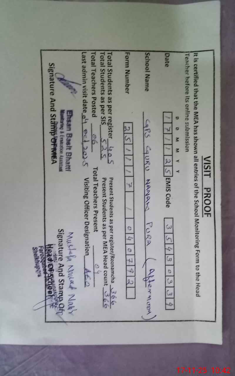 | EMIS Code: 35430334 | Name of School: GPS GURU NANAK PURA | |||
