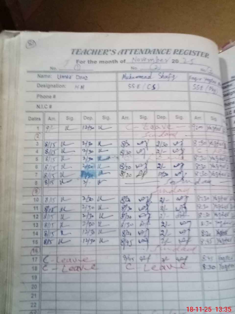 | Name: Um**** Dr**** Designation: (School Headmaster's/Headmistress's) HEADMASTER Phone/Cell Number: 03**** |