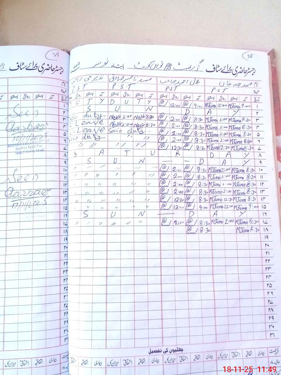 | CNIC | Full Name | Designation | R/C | Absence During Last Calender Month |