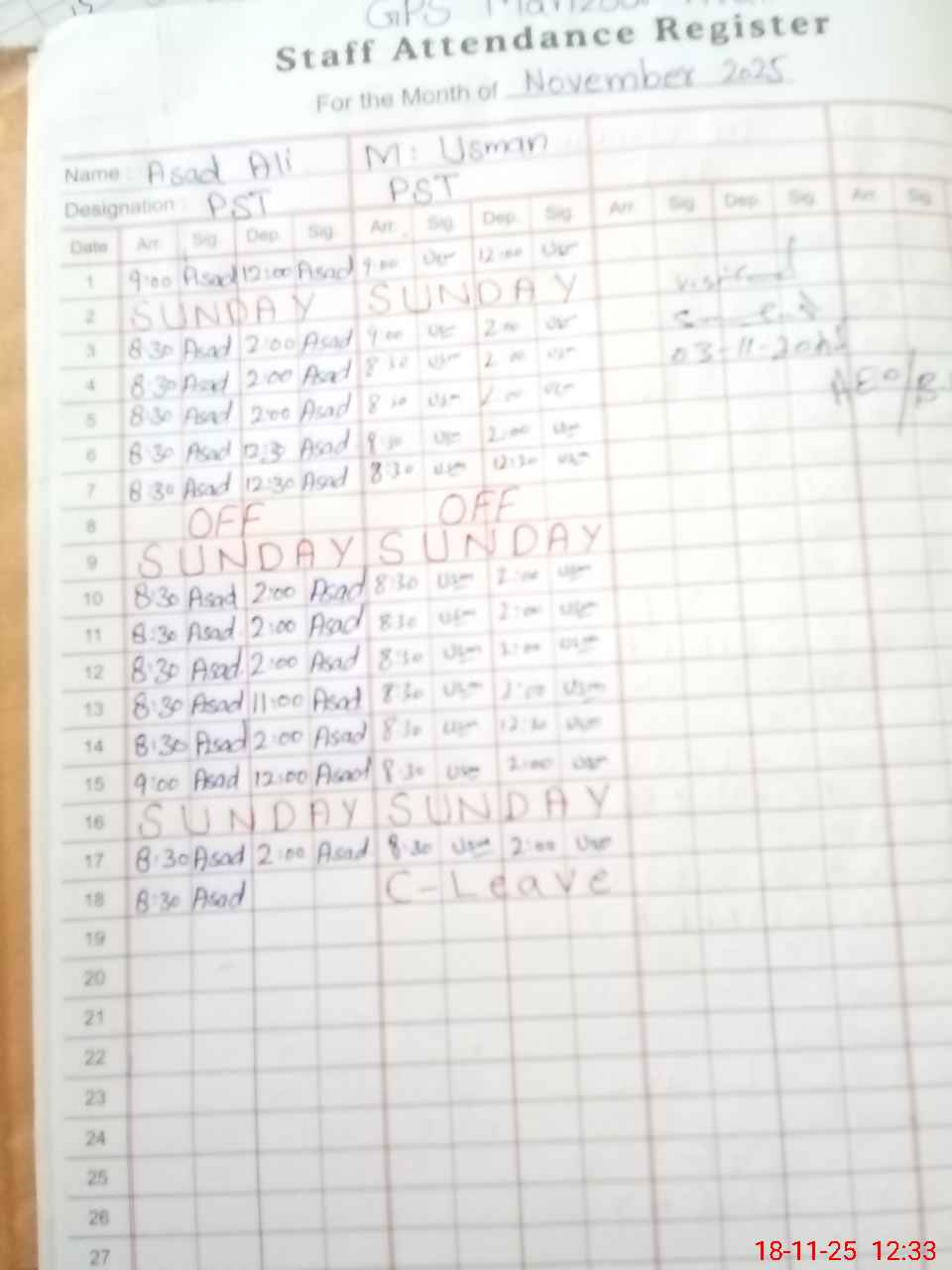 | Name: As**** Al**** Designation: (School Headmaster's/Headmistress's) PST Phone/Cell Number: 03**** |