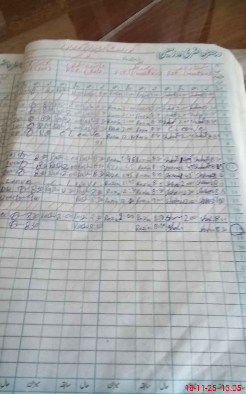 | CNIC | Full Name | Designation | R/C | Absence During Last Calender Month |