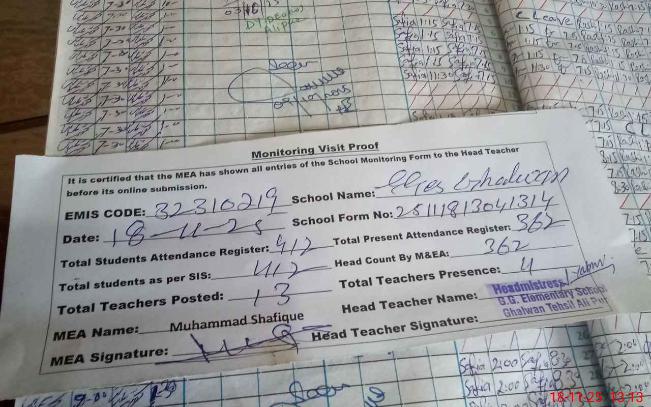 | Attendance Register | Head Teacher | MEA with School | Visit Proof |