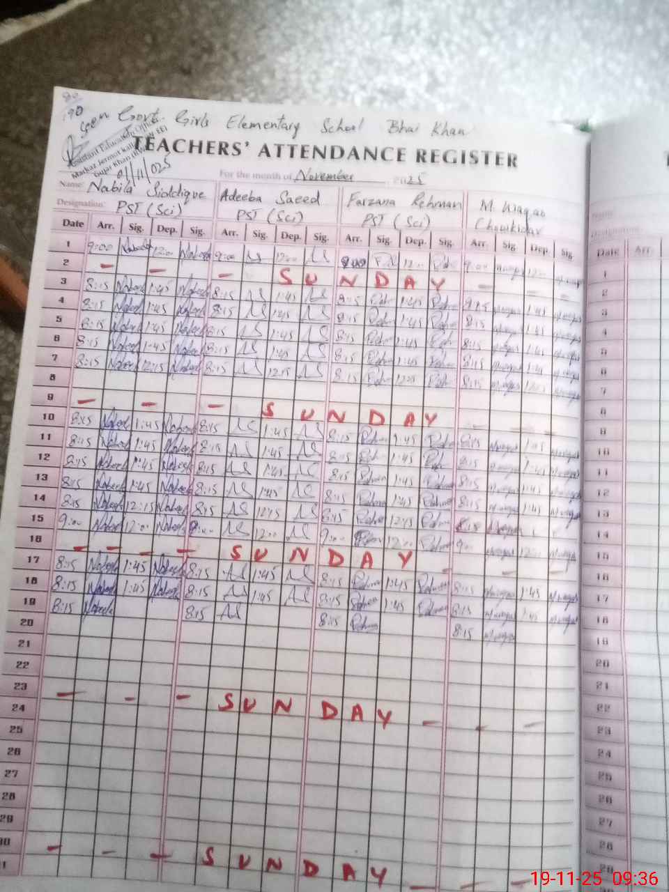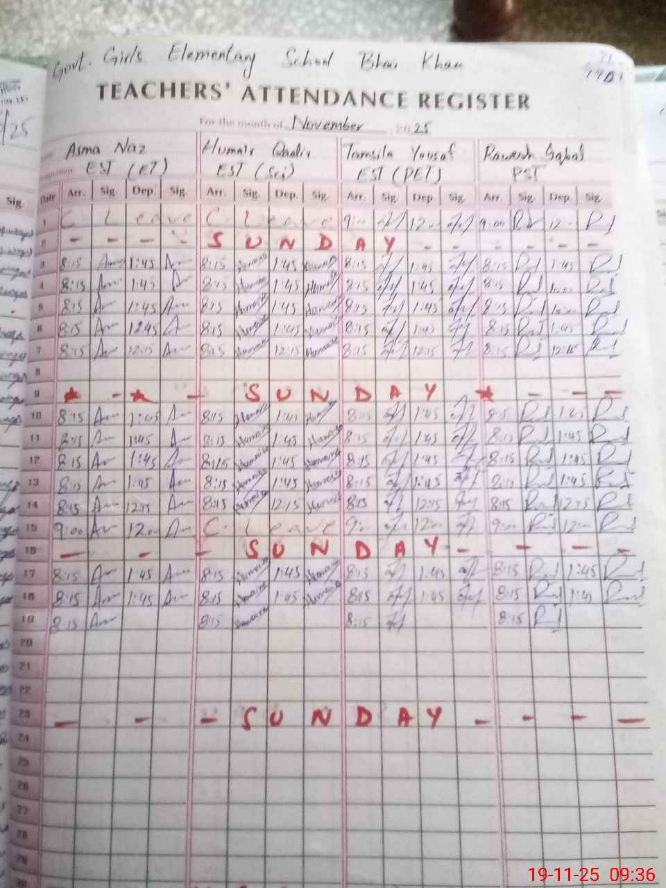| CNIC | Full Name | Designation | R/C | Absence During Last Calender Month |