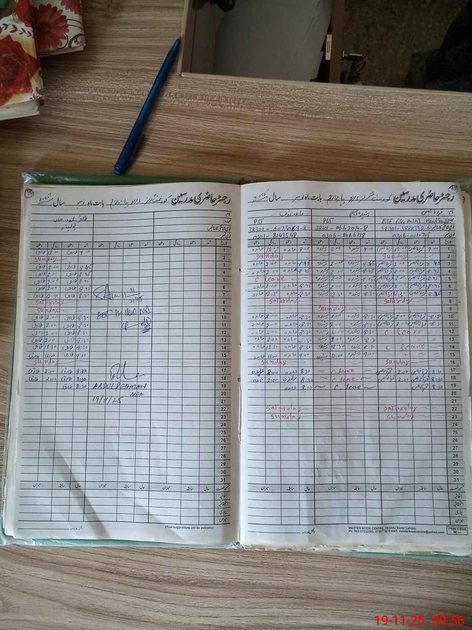 | CNIC | Full Name | Designation | R/C | Absence During Last Calender Month |