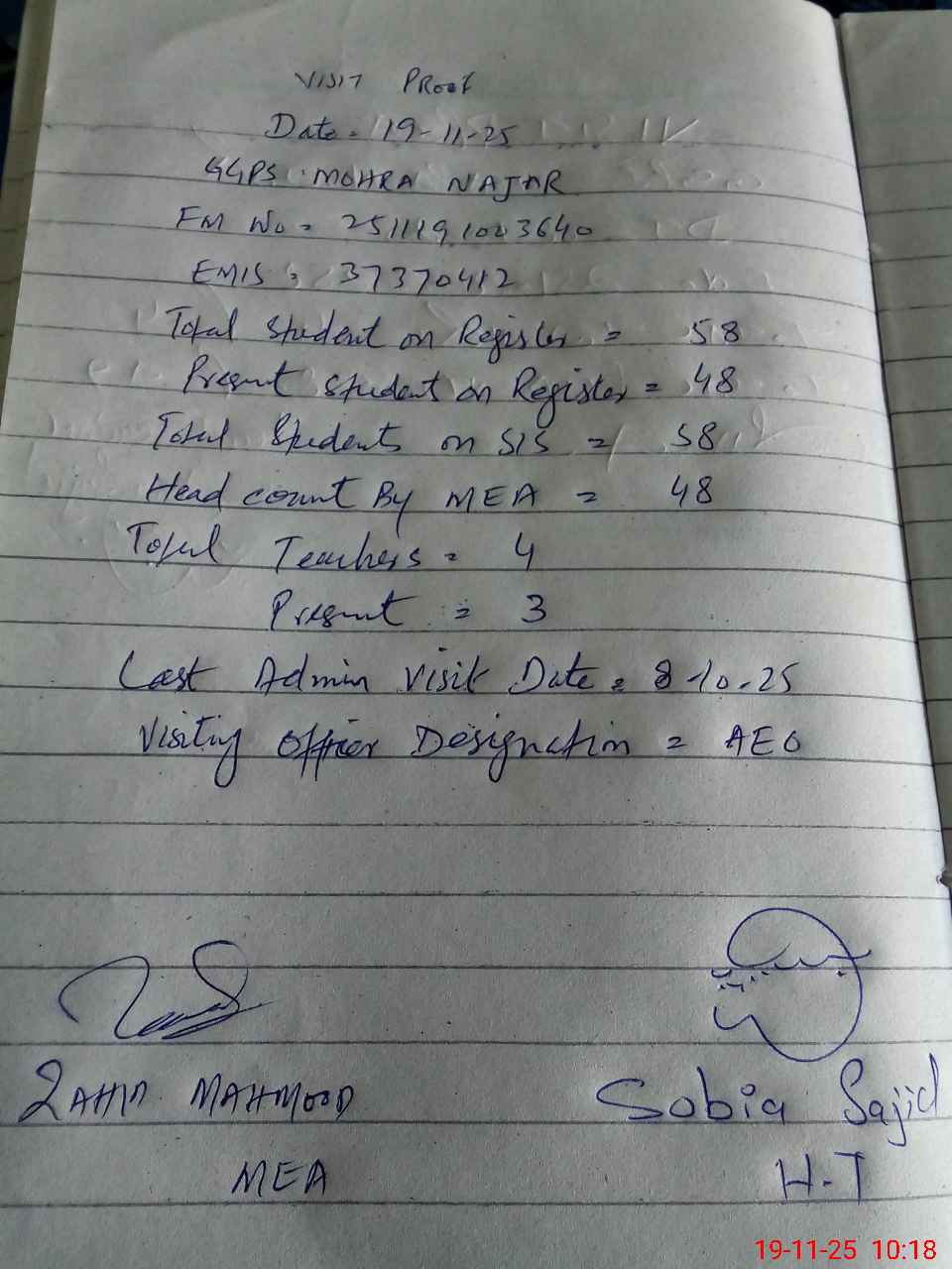 | EMIS Code: 37370412 | Name of School: GGPS MOHRA NAJAR | |||