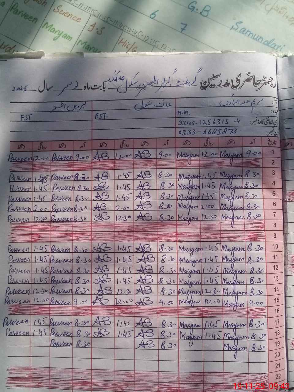 | Name: AI**** BA**** Designation: (School Headmaster's/Headmistress's) EST GENERAL Phone/Cell Number: 03**** |