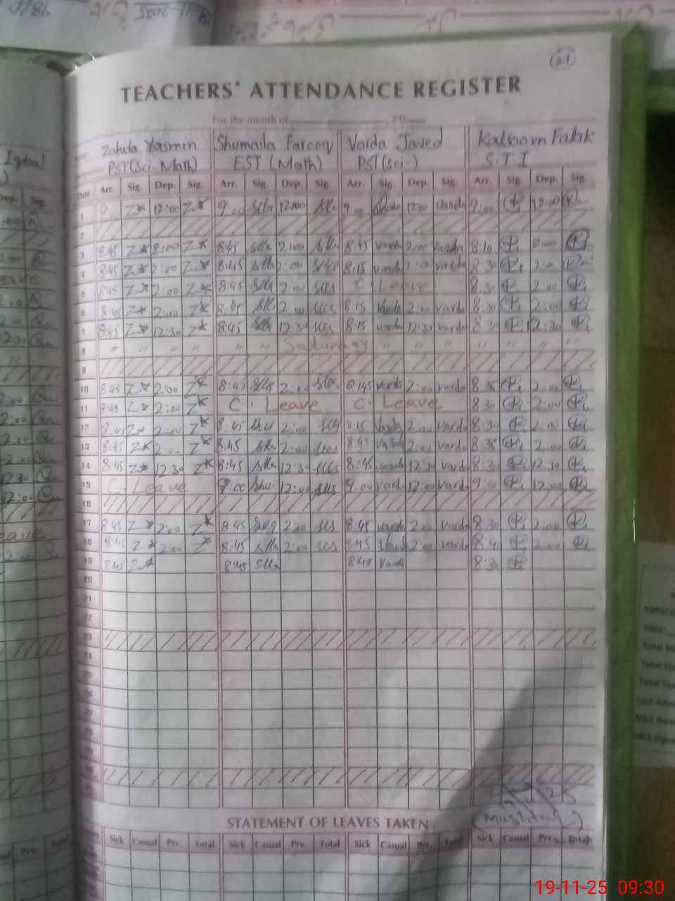 | Leave | Duty | Absent | Maternity | Medical | Ex- Pak |