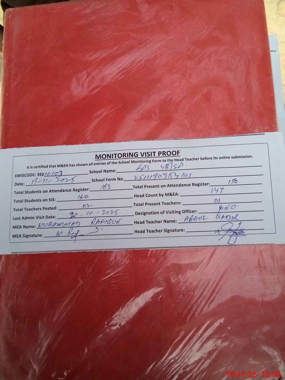 | EMIS Code: 39210103 | Name of School: GPS 48/SP P.O 8/S.P PAKPATTAN | |||
