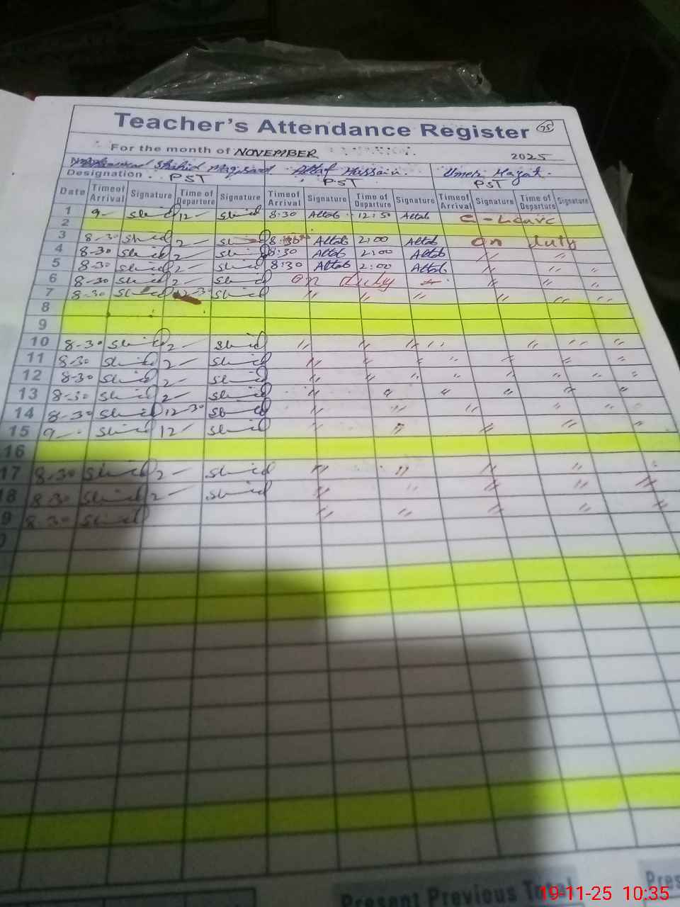 | CNIC | Full Name | Designation | R/C | Absence During Last Calender Month |