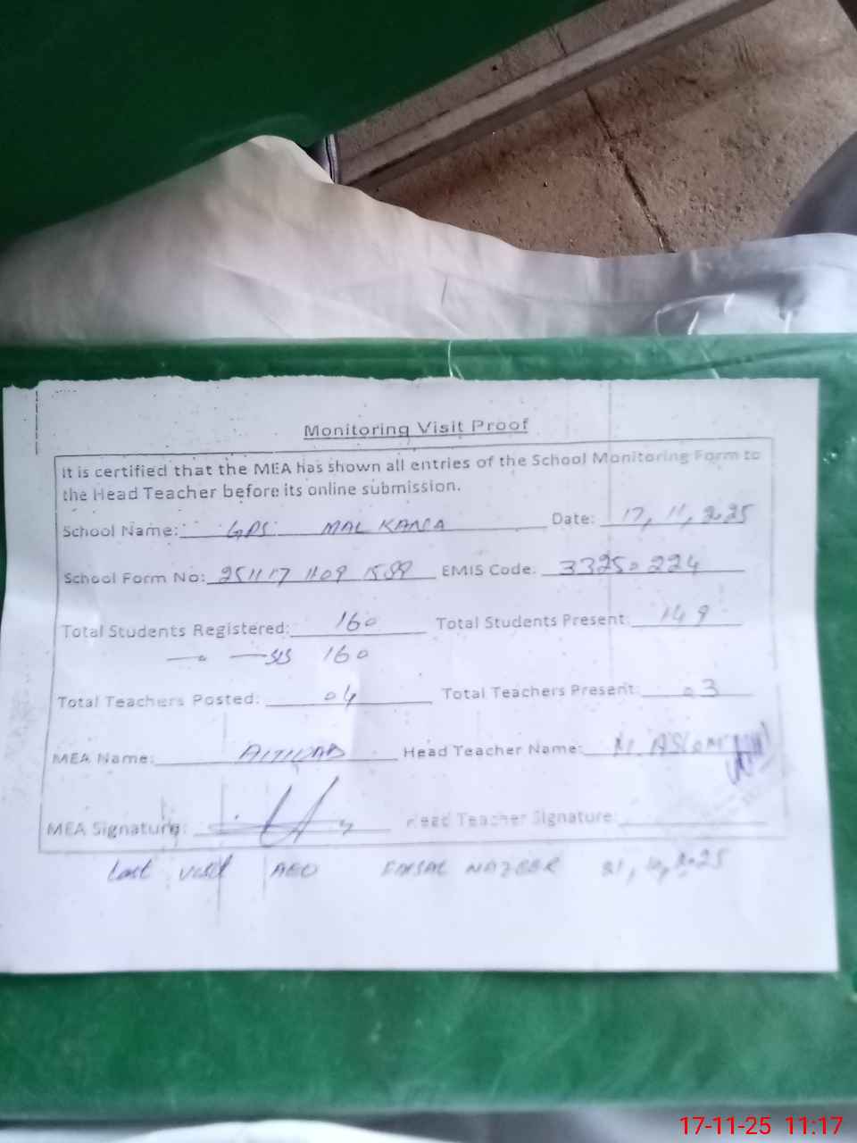 | EMIS Code: 33250224 | Name of School: GPS MALKANA | |||