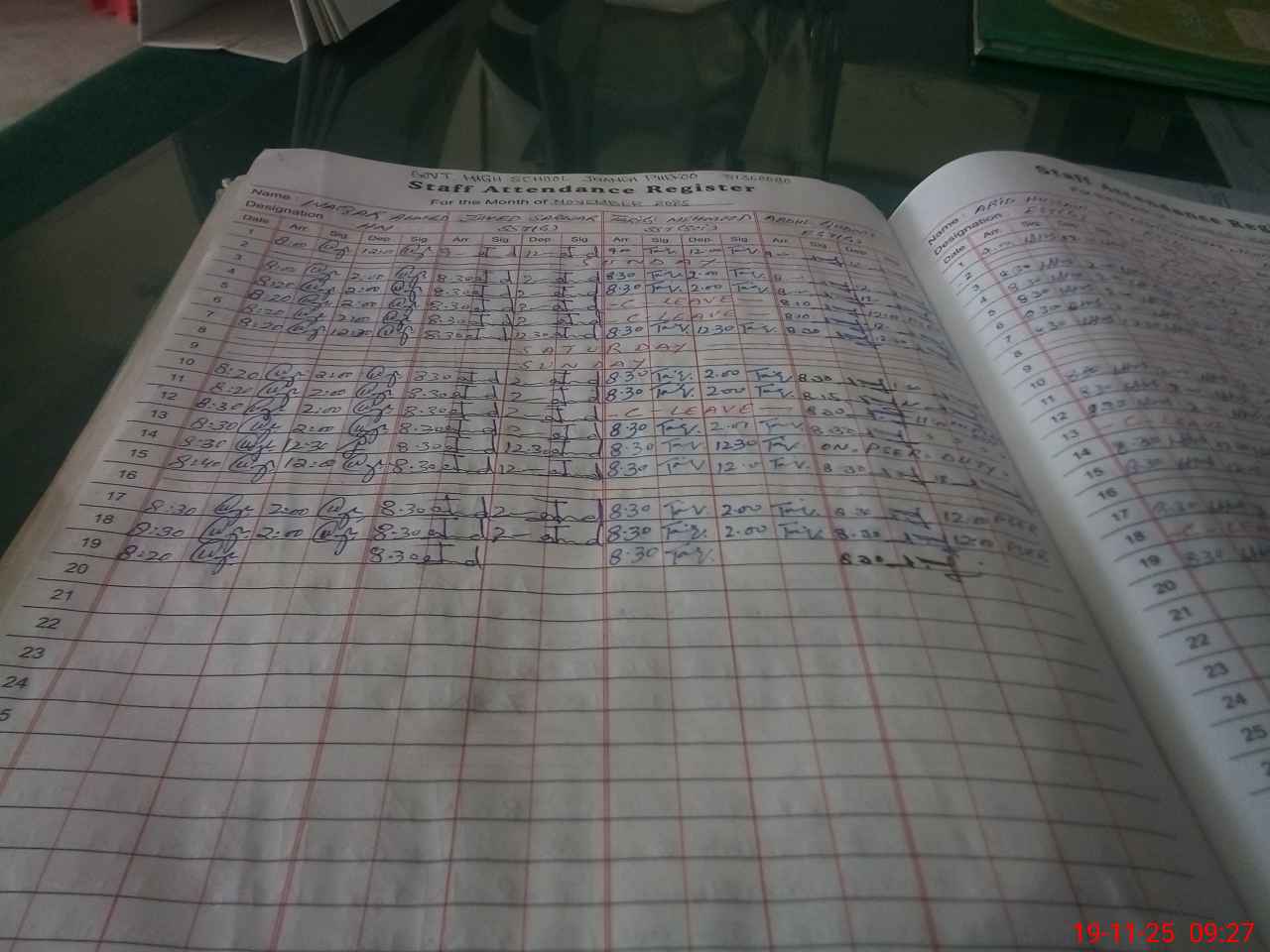 | CNIC | Full Name | Designation | R/C | Absence During Last Calender Month |