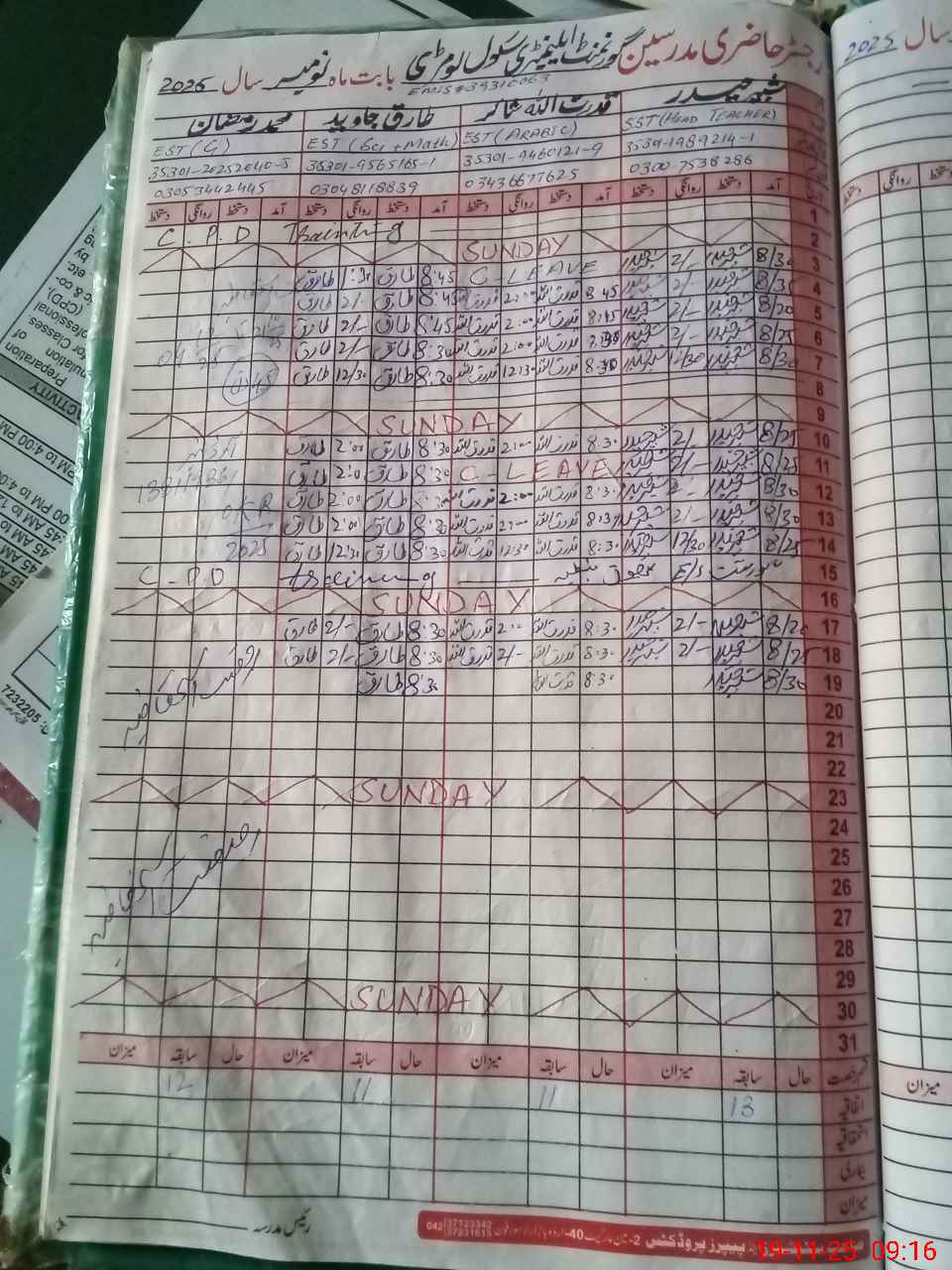 | CNIC | Full Name | Designation | R/C | Absence During Last Calender Month |