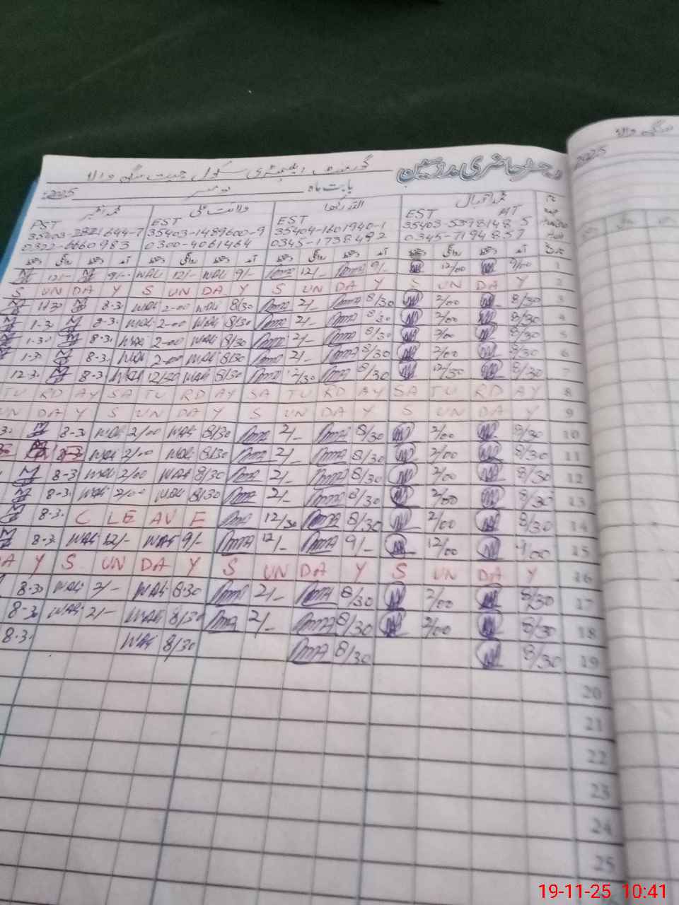 | CNIC | Full Name | Designation | R/C | Absence During Last Calender Month |