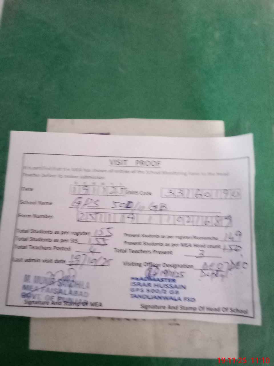 | EMIS Code: 33160190 | Name of School: GPS CHAK 500 GB II MAMUNKANJAN | |||