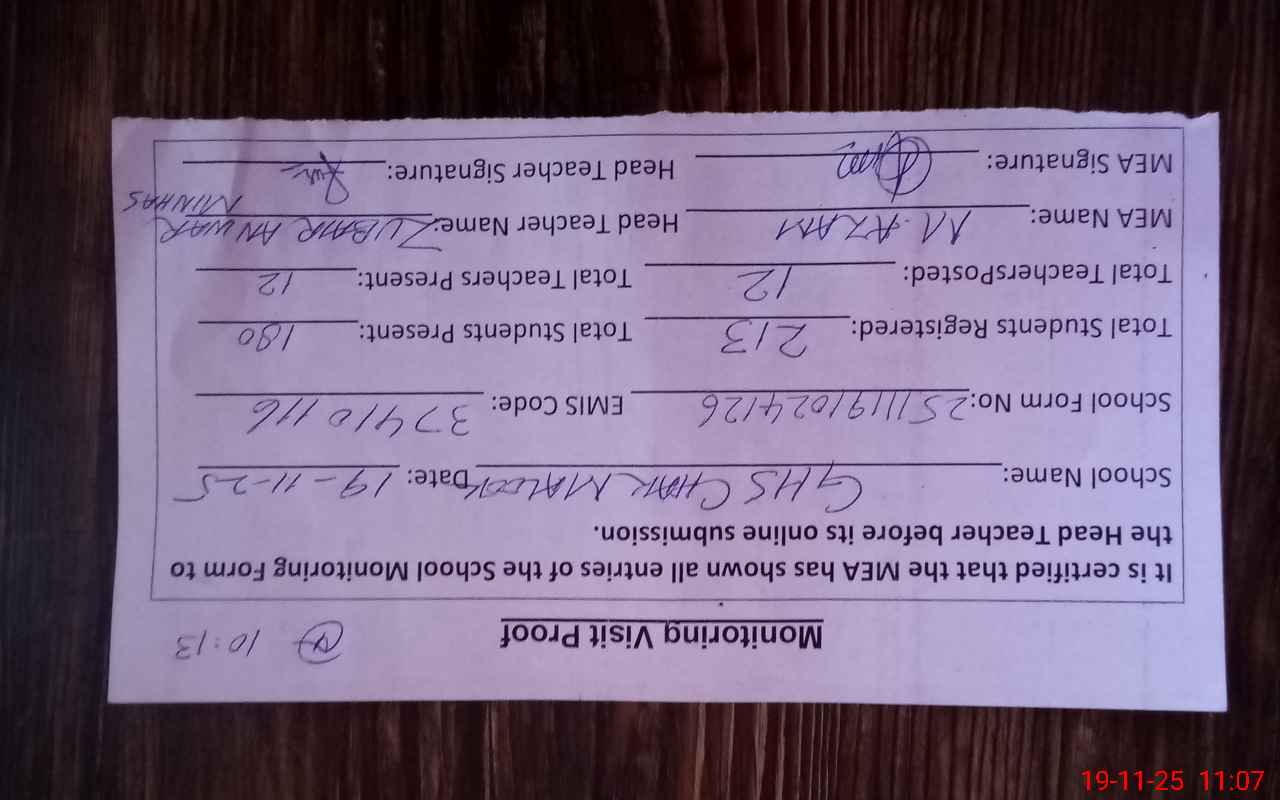 | Name: Zu**** An**** Mi**** Designation: (School Headmaster's/Headmistress's) HEADMASTER Phone/Cell Number: 03**** |