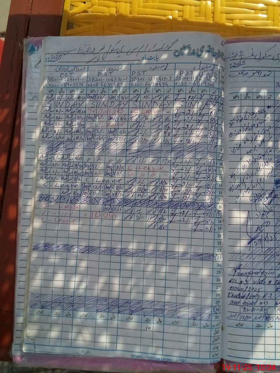 | Remarks (Use Separate Page if Required): Teacher umer draz is absent 19112025 | |||||