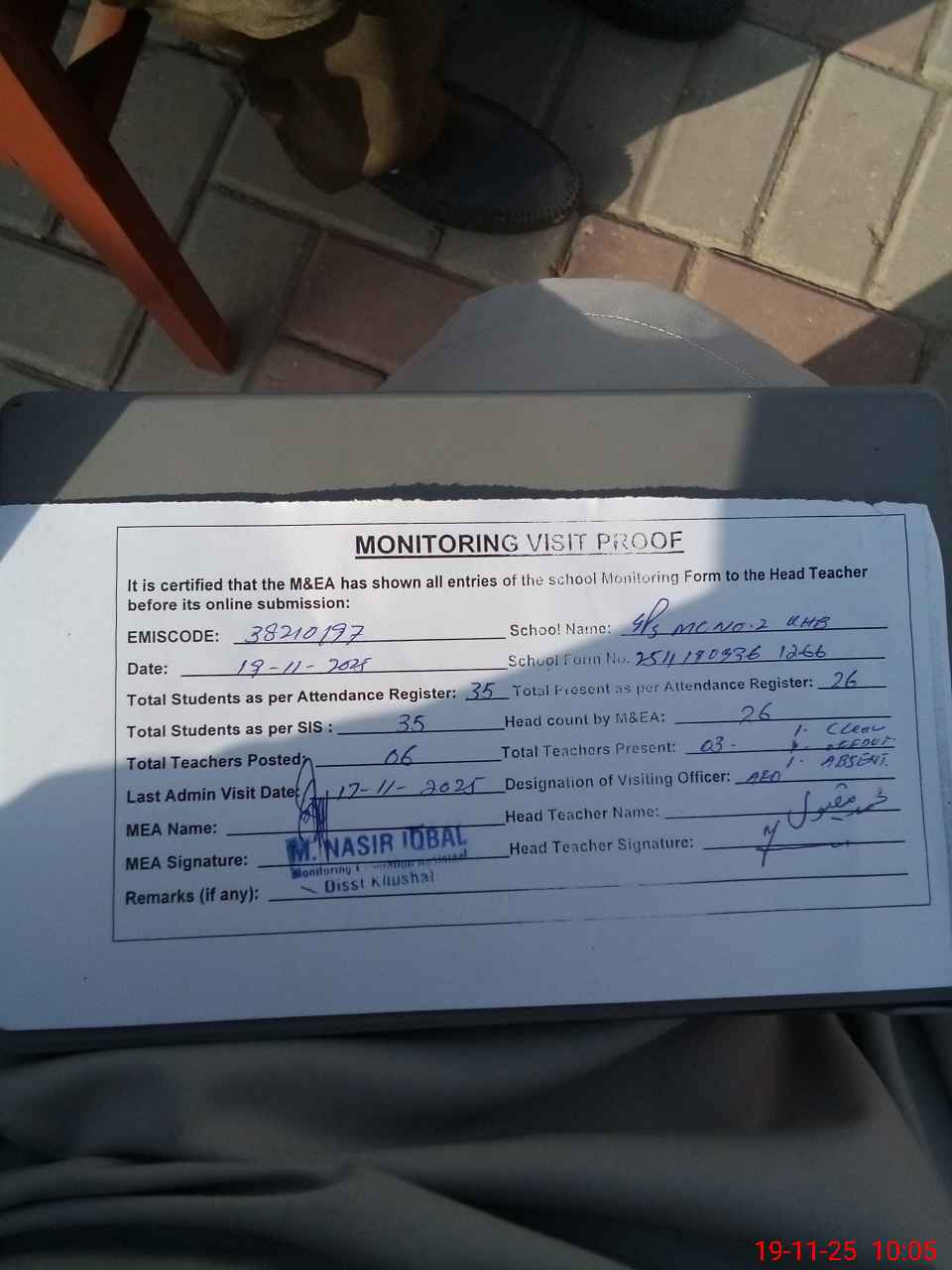 | EMIS Code: 38210197 | Name of School: GPS MC NO. 2 KHUSHAB | |||