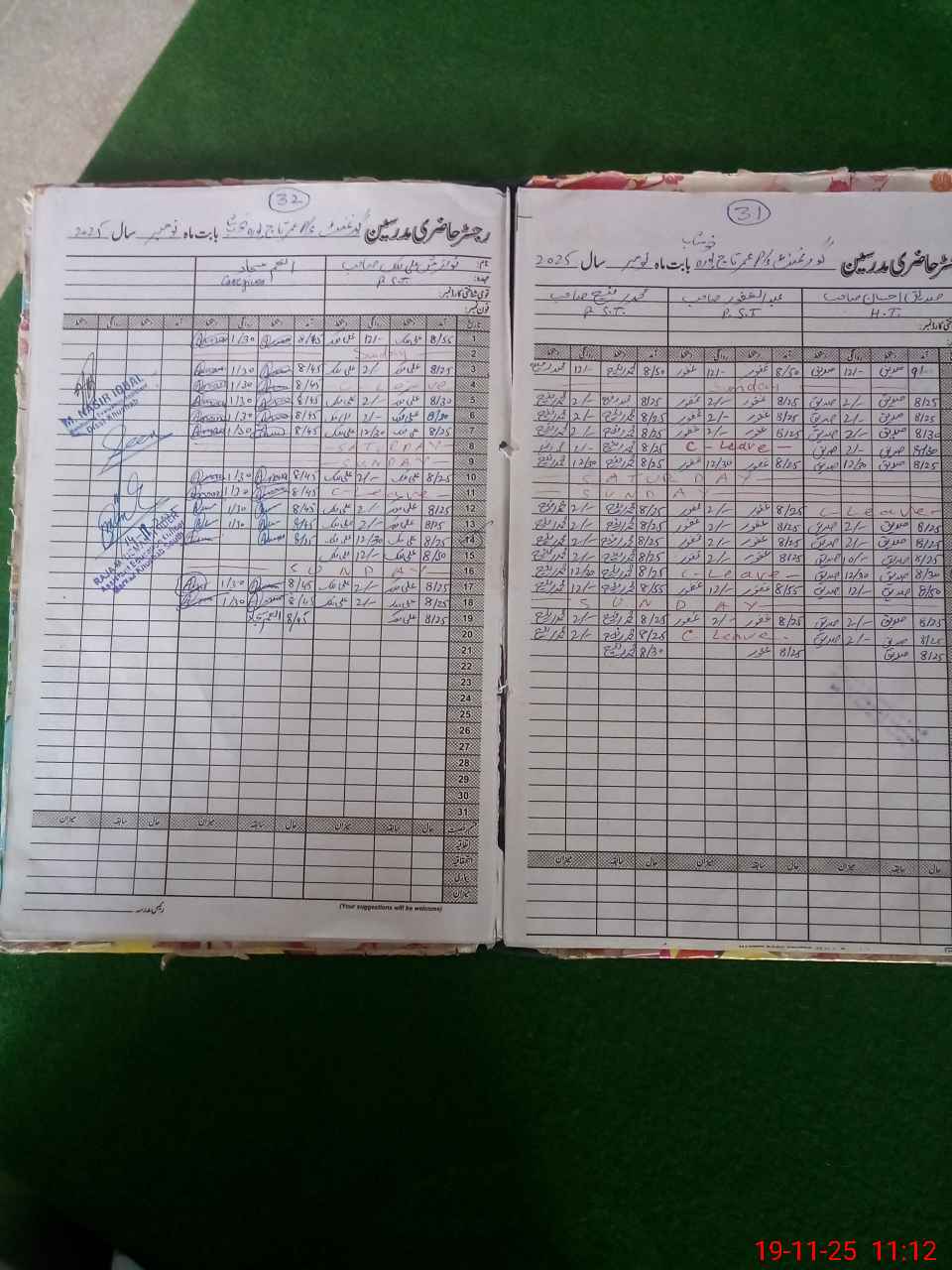 | CNIC | Full Name | Designation | R/C | Absence During Last Calender Month |