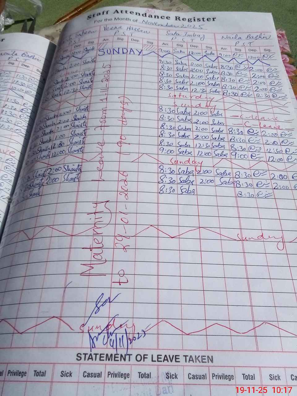 | Leave | Duty | Absent | Maternity | Medical | Ex- Pak |