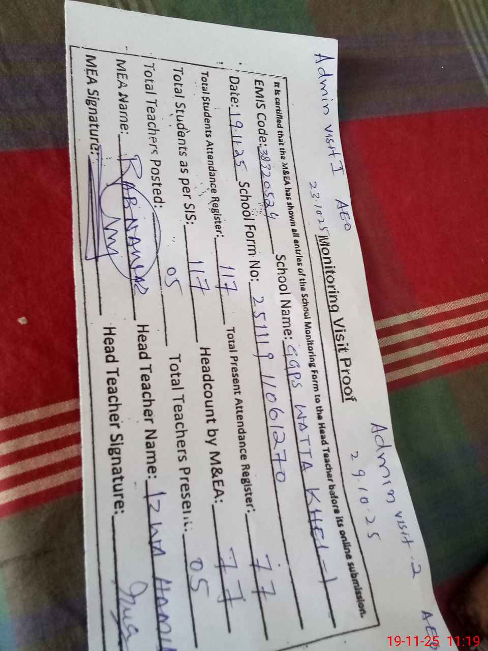 | EMIS Code: 38320524 | Name of School: GGPS WATTA KHEL NO.1 | |||