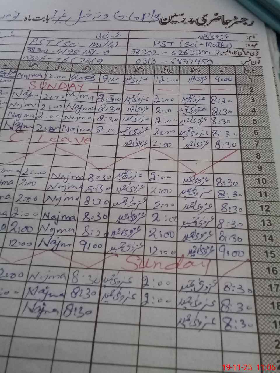 | Name: Iz**** Ha**** Designation: (School Headmaster's/Headmistress's) PST Phone/Cell Number: 03**** |