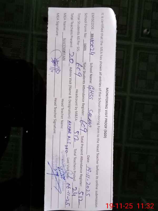 | EMIS Code: 38410024 | Name of School: GHSS SALAM | |||