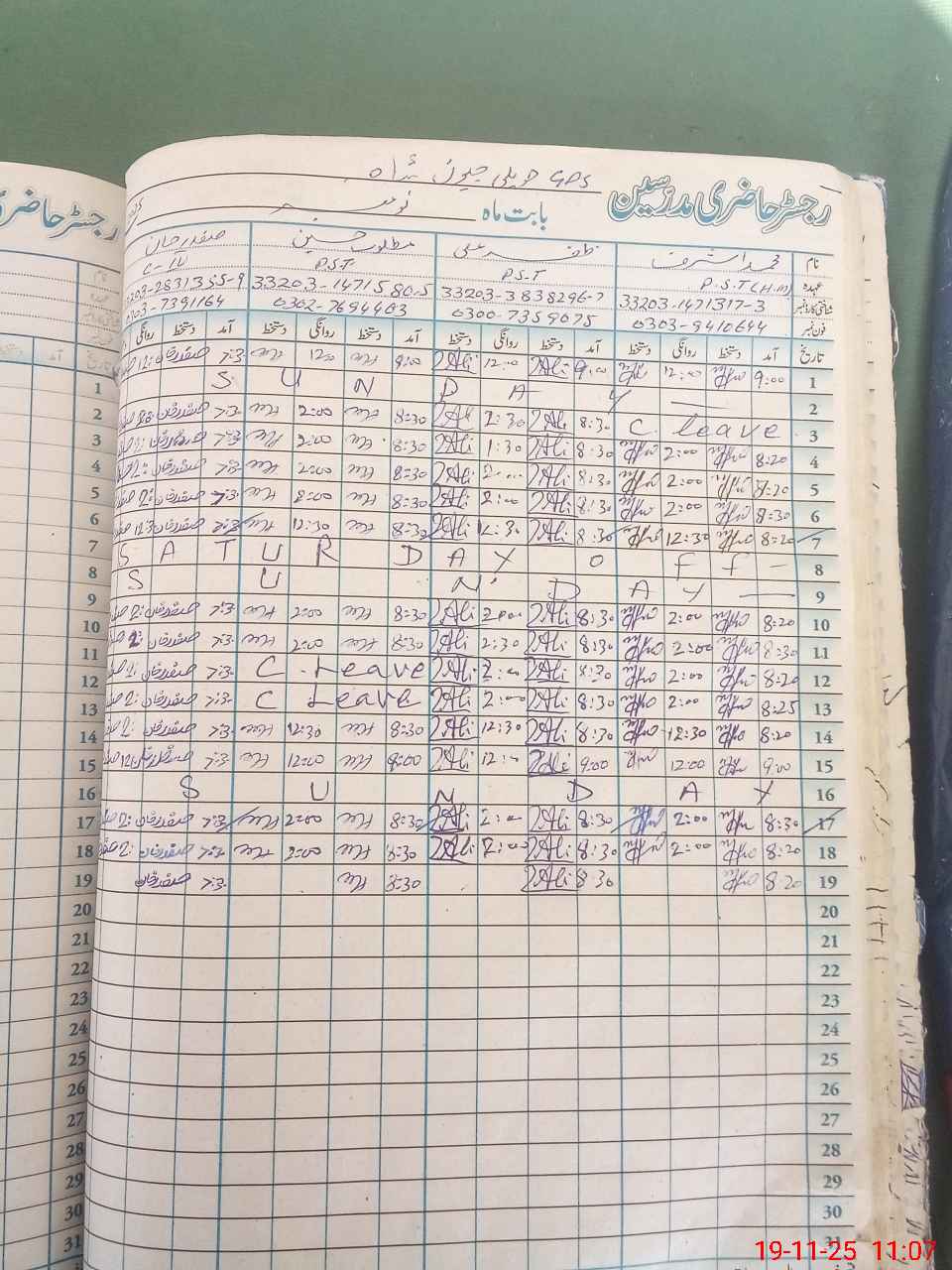 | CNIC | Full Name | Designation | R/C | Absence During Last Calender Month |