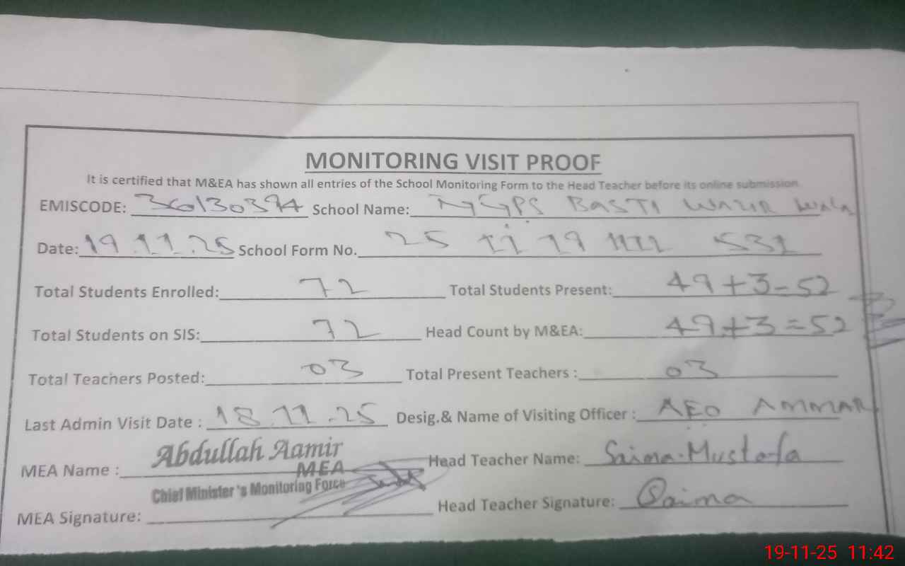 | EMIS Code: 36130394 | Name of School: GGPS BASTI WAZIR WALA NEAR GOPAL PUR MULTAN | |||