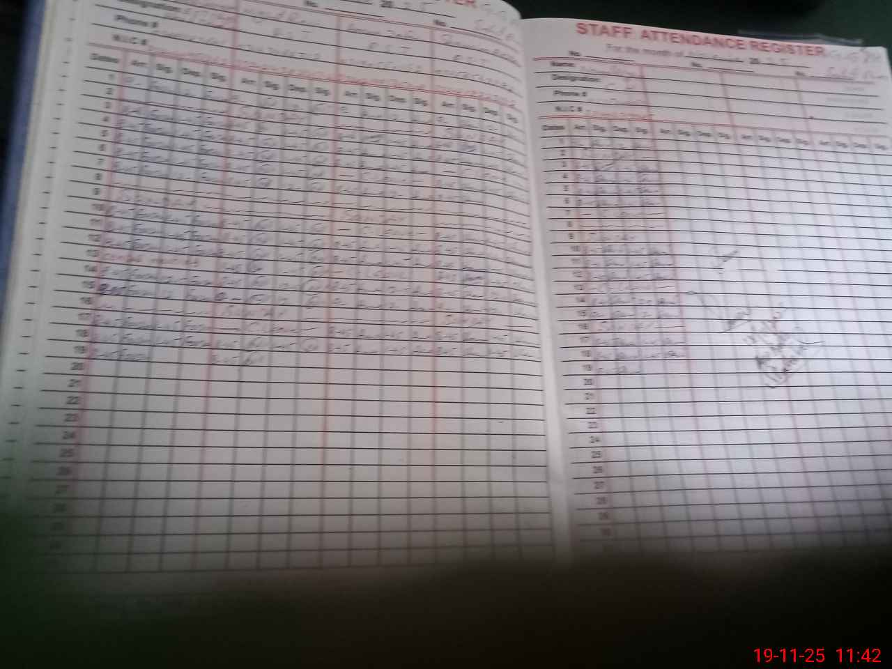 | CNIC | Full Name | Designation | R/C | Absence During Last Calender Month |