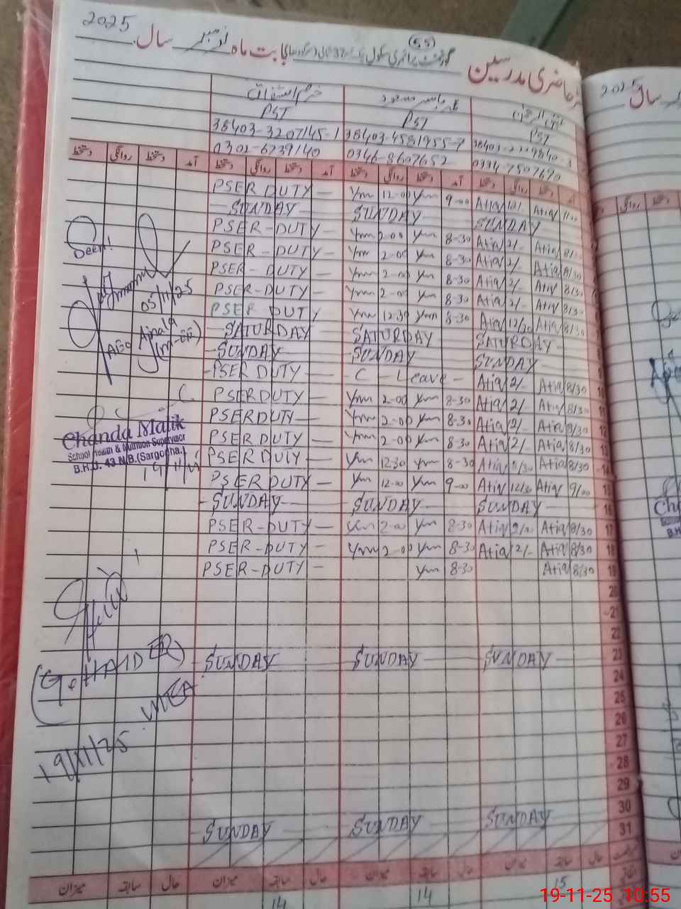 | Name: AT**** URRE**** Designation: (School Headmaster's/Headmistress's) PST Phone/Cell Number: 03**** 75**** |