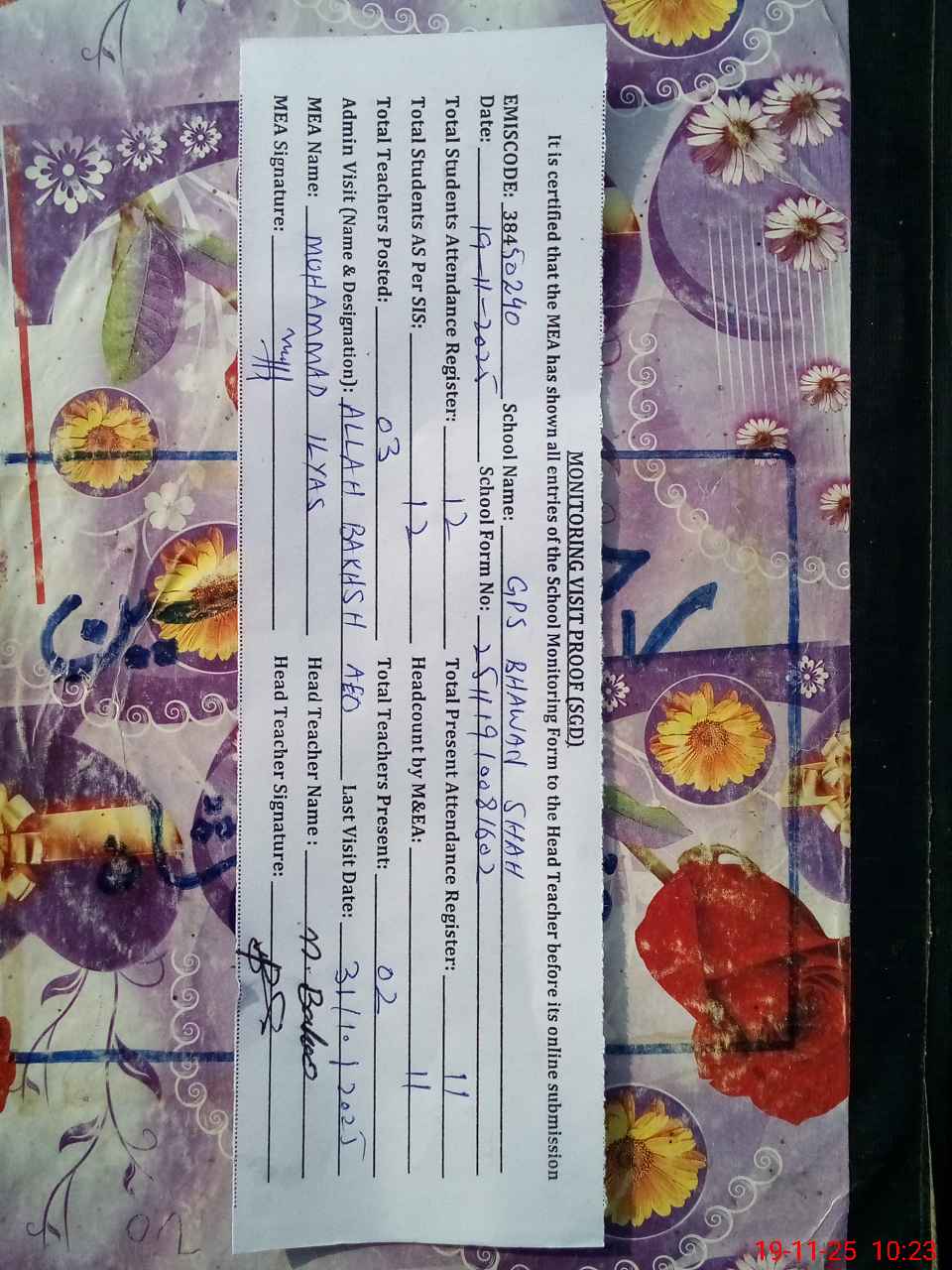 | EMIS Code: 38450240 | Name of School: GPS BHAWAN SHAH | |||