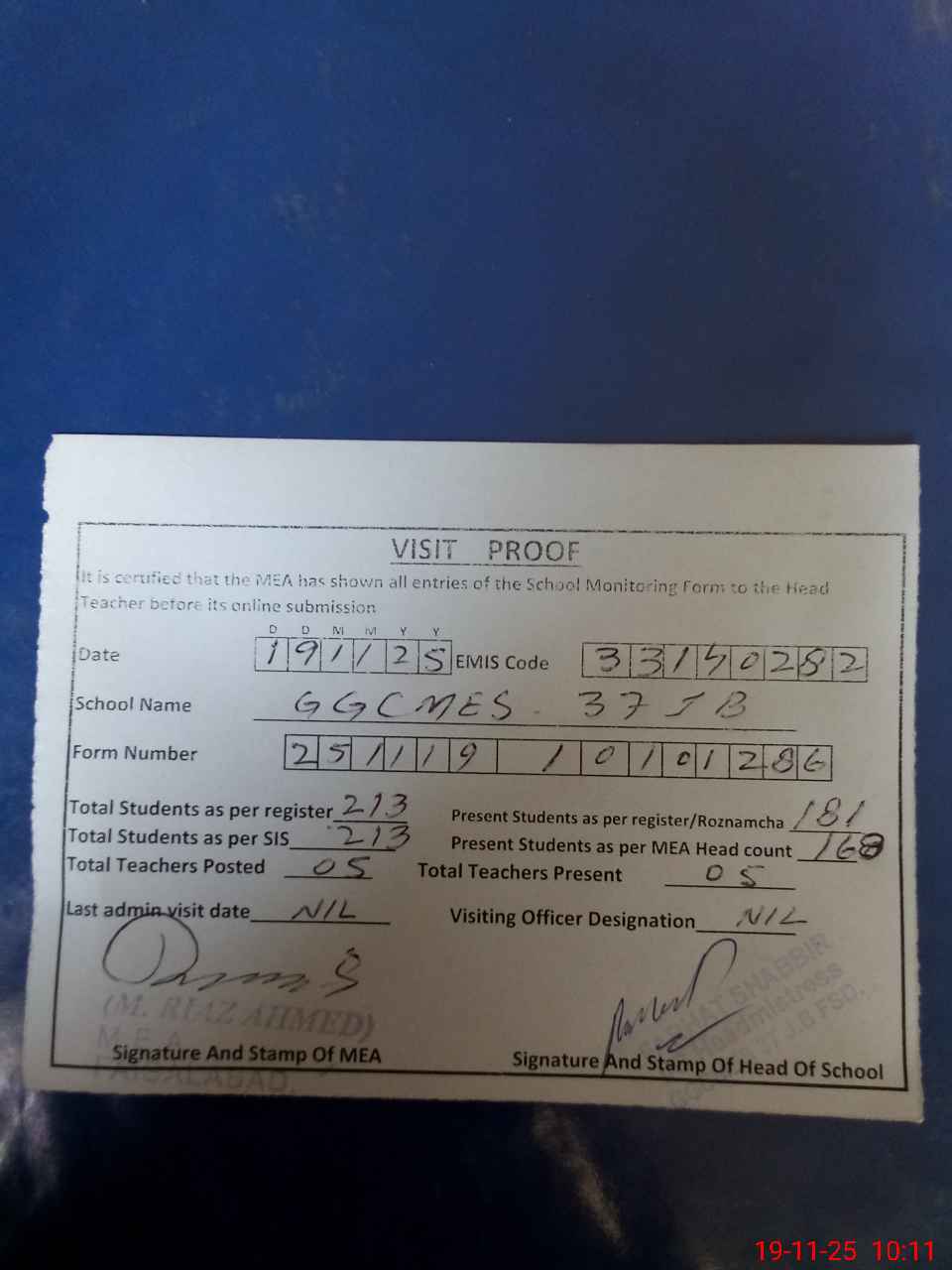 | Certified that this School was Inspected by the Undersigned MEA/DMO Today and the Information Stated Above is as Per Record. | |||||