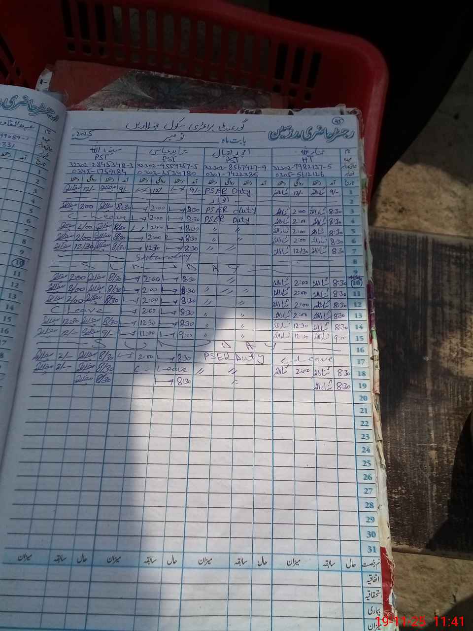 | CNIC | Full Name | Designation | R/C | Absence During Last Calender Month |
